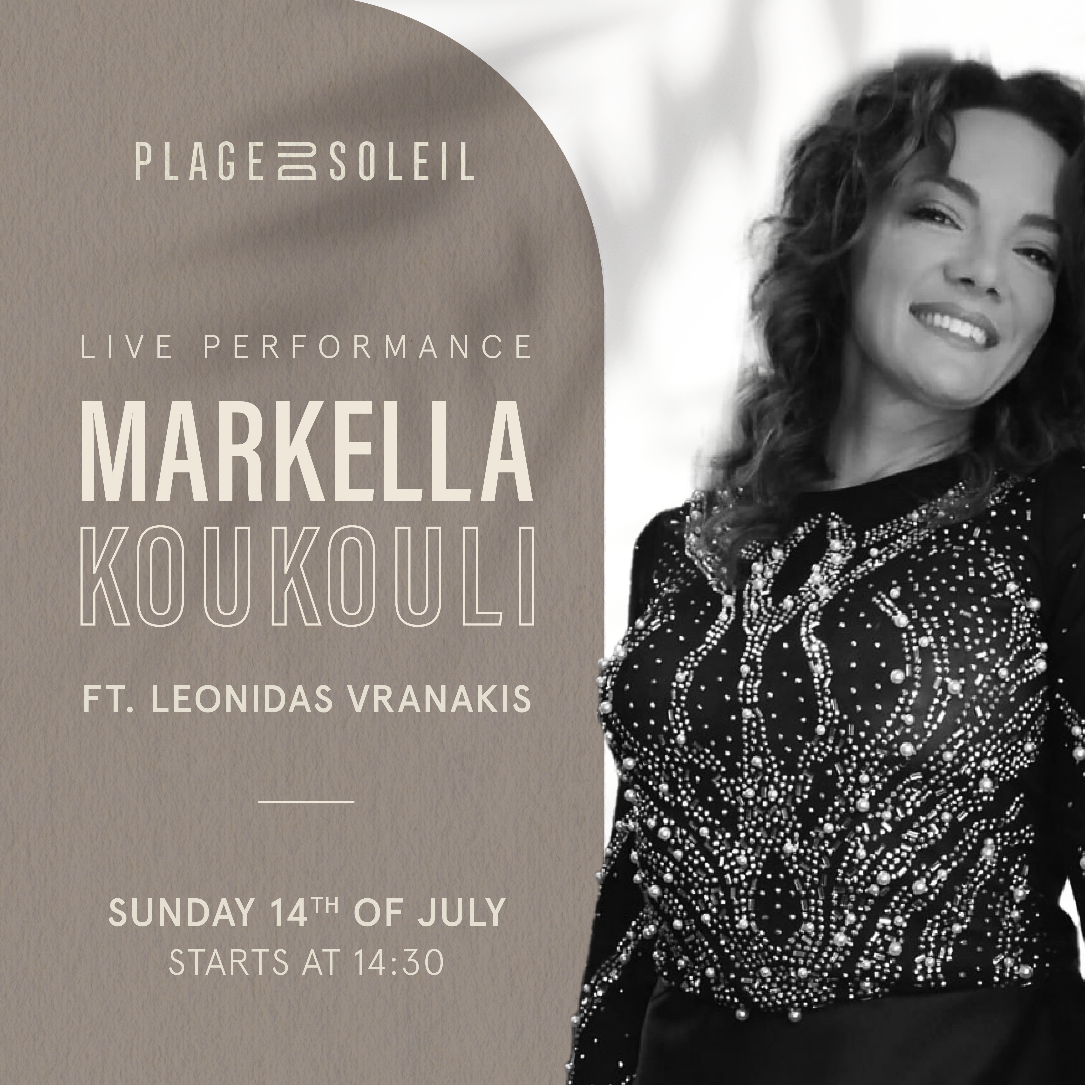 Join us for an unforgettable afternoon of sun, sand, and soulful tunes as Markella Koukouli takes the stage, featuring the dynamic beats of DJ Leonidas Vranakis! 🌊🐚